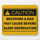 Warning sign. Be warned: fatherhood leads to sleep deprivation. On the other hand, it can also lead to the best situations of your life.