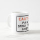 A sign that says caution paint spray truck ahead. This design looks really effective on these Mug