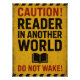 Alert everyone to the sacred state of a deep reader with this humorous and striking "Caution! Reader In Another World Do Not Wake!" sign. Featuring a distressed, vintage-inspired yellow and black design reminiscent of a warning sign, it's perfect for avid readers, bookworms, and anyone who understands the immersive power of a good book. Ideal for quiet reading nooks, libraries, bedrooms, or as a witty gift for the literary enthusiast in your life.