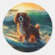 Cavalier King Beach Surfmalerei Runder Aufkleber