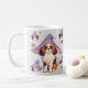 Genießen Sie eine ruhige Kaffeepause mit diesem Niedlichen Cavalier King Charles mit ihren pastellfarbenen lila Hexenhüten Halloween Coffee Tasse.