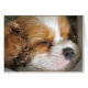 Ein bezauberndes Foto eines Cavalier King Charles Spaniel sehr junger Welpe, der auf einer Decke schläft