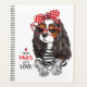 Dieses Design ist mit einem Cavalier King Charles Spaniel Hund gekleidet in einer gestreiften Kardigan, roten Sonnenbrille und mit einem Polka Dot Headband.