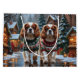 This festive design captures the joyful spirit of the holiday season, featuring an adorable dogs.Nestled in a winter wonderland, complete with a decorated Christmas tree, and beautifully wrapped presents. Snowflakes gently fall, adding a magical touch to the scene, while the vibrant colors of the holiday decorations create a warm and cheerful atmosphere.