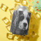 Schwarz-Weiß, nah-oben Porträtfotografie eines wunderschönen, seelenvollen Königs Charles Spaniel.