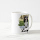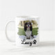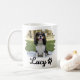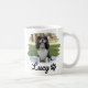 Brighten your mornings with this charming personalized pet photo mug! Featuring a tricolor Cavalier King Charles Spaniel named “Lucy,” posed on a light blanket in a sunny park and framed by a soft white brushstroke border for a crafted, artistic look. Elegant black script lettering with a small paw icon completes the modern pet portrait style.