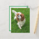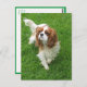 Brighten Sie jemandem den Tag mit einem König Charles Jungtier! Diese lustige canine Postkarte zeigt ein Bild eines Cavalier King Charles Spaniel Welpenhundes, der im grünen Gras spaziert.