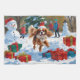 Ein fröhlicher Cavalier König Charles Spaniel läuft durch die schneebedeckte Winterszene und trägt einen festlichen roten Weihnachtshut. Dieses charmante Design hebt die seidigen Ohren der Rasse, die sanfte Natur und die spielerische Persönlichkeit hervor und erweckt gleichzeitig die Wärme und Freude der Ferienzeit. Ein herzlicher Winter voller festlichen Beifall.