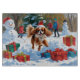 Ein fröhlicher Cavalier König Charles Spaniel läuft durch die schneebedeckte Winterszene und trägt einen festlichen roten Weihnachtshut. Dieses charmante Design hebt die seidigen Ohren der Rasse, die sanfte Natur und die spielerische Persönlichkeit hervor und erweckt gleichzeitig die Wärme und Freude der Ferienzeit. Ein herzlicher Winter voller festlichen Beifall.