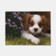 Cavalier King Charles Spanier Welpe hinter Blume Fußmatte