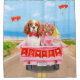 Ein niedlicher Hund, der im Valentiner Tagesgeschenkwagen sitzt, ist eine perfekte Geschenkidee für Hundefreunde.