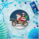 Ein Weihnachtsmann, der mit dem Fahrrad Weihnachtsbaum liefert, und ein Cavalier King Hund als Geschenk, ist eine Weihnachtsgeschenkidee für jemanden, der diesen Hund züchtet.