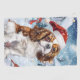 Dieses festliche Design spiegelt den fröhlichen Geist der Urlaubssaison wider und besticht durch ein hübsches Jungtier mit einer Weihnachtsmannmütze. Der Hund ist eingebettet in ein winterliches Wunderland, mit einem Schneemann, einem dekorierten Weihnachtsbaum und wunderschön verpackten Geschenken. Schneeflocken fallen sanft ab und geben der Szene eine magische Touch, während die lebhaften Farben der Feriendekorationen eine warme und fröhliche Atmosphäre schaffen.