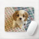 Dies ist ein Mousepad mit einem Originalfoto eines kleinen, bezaubernden Blenheim Cavalier King Charles spaniel Welpen, der auf seiner Lieblingsdecke sitzt.