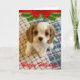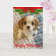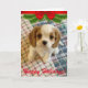 Die Ferienkarte ist mit einem Originalfoto eines bezaubernden, Blenheim Cavalier King Charles Spaniel Welpe ausgestattet, der auf seiner karierten Lieblingsdecke sitzt.