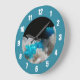 Die blaue Wanduhr ist mit einem Foto eines schönen blauen Cavanats auf einer weißen Stelbitmatrix mit schwarzem Hintergrund versehen. Wenn Sie keine Mineralien mögen, können Sie das Foto sogar durch etwas Anderes ersetzen!