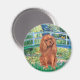 Lily Pond Bridge von Claude Monet, angepasst, um eine Ruby Cavalier König Charles Spaniel. Die Szene ist in verschiedenen Grün- und Blautönen gehalten und zählt zu den beliebtesten Gemälden Monets.