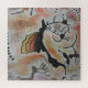 Vor tausenden von Jahren erkundeten unsere entfernten Vorfahren tief in Höhlensysteme und malen dann die Tiere, die sie an den Wänden jagen wollten. Nur durch dunkle, rauchige Fackeln entstanden Bilder von Rentieren, Pferden, wolligem Nashorn und mächtigen Bullen in reichen Erdtönen von Ocker, Braun, Rot und Kohle. Inspiriert von diesen alten Künstlern, ist dies eine farbenfrohe Darstellung der mächtigen Tiere der Eiszeit und der Männer, die sie mit einer modernen, abstrakten Drehung jagten.