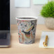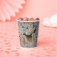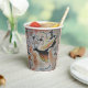 Vor tausenden von Jahren erkundeten unsere entfernten Vorfahren tief in Höhlensysteme und malen dann die Tiere, die sie an den Wänden jagen wollten. Nur durch dunkle, rauchige Fackeln entstanden Bilder von Rentieren, Pferden, wolligem Nashorn und mächtigen Bullen in reichen Erdtönen von Ocker, Braun, Rot und Kohle. Inspiriert von diesen alten Künstlern, ist dies eine farbenfrohe Darstellung der mächtigen Tiere der Eiszeit und der Männer, die sie mit einer modernen, abstrakten Drehung jagten.