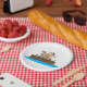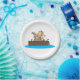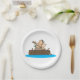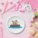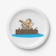 Ein Caveman in einem Kanu, der wegpaddelt. Dieses Design wirkt auf diese Paper-Teller sehr effektiv