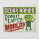 Eine lustige Cedar Rapids Iowa Vintage Reise-Postkarte mit einem freundlichen Roboter mit lustigem Retro-Stil-Text, der sagt: "Cedar Rapids, Robot Hauptstadt of the world!"
