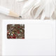 Ein Zeder Waxwing steht in einem Baum, mit einer roten Beere im Schnabel. Er ist von einem Gewirr brauner Zweige umgeben, mit vielen roten Beeren, die verstreut sind. Der Waxwing hat einen sandbraunen Körper und eine schwarze "Maske" durch seine Augen. An seinen Beinen sind blassgelbe Federn, und ein dunkelgrauer Schwanz in hellgelb geknippt. Seine Flügel sind dunkelrot mit schwarzen Spitzen und roten Markierungen.