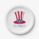 Teller zeigen eine originelle Marker-Illustration einer rot, weiß und blau patriotischen amerikanischen Flagge "US Flagge" Onkel Sam Top Hut, mit CELEBRATE in einem lustigen Schriftart. Perfekt für den 4. Juli oder andere patriotische Feierlichkeiten! Koordinierung der verfügbaren Party.