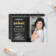 Enthält ein Foto in der Größe 8x10 auf der Vorderseite (bitte ersetzen Sie das Vorlagenbild vor dem Kauf). Das Wort "graduate" in Gold, mit weißem Text über einem Chalkboard-Hintergrund. Modernes, goldenes Dreieck Konfetti Design auf der Rückseite. Einfach zu anpassen! Das Produkt enthält keine Goldfolie.