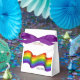Diese PRIDE THEMED Fevor Box enthält das LGBTQ-Flag. Auf der Vorder- und Rückseite lautet der Text "Feiern!". Es gibt einen Bereich für benutzerdefinierten Text, auf der Frontklappe. Der Zeltverkauf hat vier Farbvarianten (lila hier).
