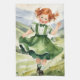 Celebrate being Irish and St. Patrick's Day with his dish towel that makes great home decor, the art work is a ref headed little girl from 1940's dressed up for the holiday and she is running up a hill side to greet and celebrate.
