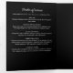 Elegant black and white funeral program brochure with photo collage offering a timeless and respectful way to celebrate the life of a loved one. This fully editable folded design features a dignified black background with classic white typography that evokes grace and solemnity. The front and back panels include space for a large main photo, a smaller circular portrait, name and dates, and a heartfelt celebration message, while the inside panels provide multiple sections for acknowledgments, order of service, personal tributes, and memorial poems or readings. Designed to suit a wide range of memorial styles, this template offers room for customization to reflect religious services, non-religious celebrations of life, or family-led remembrances. The monochrome aesthetic adds a sense of refined simplicity, keeping the focus on honoring the individual’s life and legacy. Ideal for funerals, memorial services, and celebration of life ceremonies, this elegant program folds out to offer a meaningful keepsake filled with loving memories and heartfelt words.
