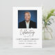 Share a meaningful tribute with this modern Celebration of Life photo memorial invitation. Featuring a clean, elegant layout with refined script typography, this customizable card offers a beautiful way to invite family and friends to a remembrance or celebration of life service. Personalize with your own photo and event details to create a timeless and heartfelt keepsake.