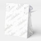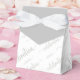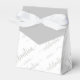 Weiße Gefälligkeitsbox mit Kronen des Feierns in einem dekorativen Script-Schriftart mit Glyphe in verschiedenen Größen. Der vordere "Deckel" ist in fester Farbe, sodass das weiße Band angezeigt wird. Diese Gunst Box und Design ist vielseitig und geht für die meisten Anlässe und Themen; Geburtstag, Hochzeit, Jubiläum, Urlaub und mehr. Das klassische Design in einfarbigen Farben macht es elegant und modern. In Gold und Silber Versionen.