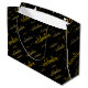 Schwarze Geschenktasche mit Goldfarben in verschiedenen Größen mit der Textfeier in einem skript-Schriftart mit Glyphe. Diese Geschenktasche und Design geht für die meisten Anlässe wie Feiertage, Jubiläum, Geburtstag, Hochzeiten, Babyduschen und mehr. Dieses moderne und minimalistische Design in Gold auf schwarz macht es elegant und exklusiv. Bestellen Sie diese und nutzen Sie sie für verschiedene Veranstaltungen.