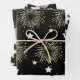 Geschenkpapier in weiß, Gold und Farben auf schwarz, mit Feuerwerk und Sternen, weißem goldfarbenem Sternmuster und farbigen Ballons. Diese vielseitige Auswahl an Verpackungspapieren kann für Neujahrsgeschenke, Geburtstagsgeschenke und für fast jede Feier oder Veranstaltung genutzt werden.