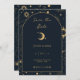 Diese einzigartige, individuell anpassbare Save the Date Einladungskarte, die sich mit unserer Celestial Mystic Collection abstimmen lässt, verfügt über prächtige goldene Himmelselemente auf dunklem Marinestützpunkt mit Bogenrand. Für eine erweiterte Anpassung dieses Designs, z.B. das Ändern des Layouts, des Schriftartes oder der Textgröße, klicken Sie bitte auf den obigen Button "KENNEN". Bitte kontaktieren Sie mich für weitere Fragen!
