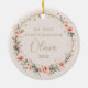 Feiern Sie Ihren ersten Urlaub mit diesem Celestial Baby First Christmas Design. Dieser Sake mit seinem Foto, gerahmt von einem zarten Aquarellkranz aus Champagnergolden, Halbmonden, Blütenfloralen und gedämpfter Salbeigrün, ist auf glattem Porzellan mit einem warmen, blütengrünen Hintergrund bedruckt. Die Rückseite zeigt "Mein allererstes Weihnachten" mit dem Namen und dem Jahr Ihres Kindes in eleganter Typografie und schafft eine traumhafte, heitere Dekoration. Ideal, um Neueltern oder Großeltern eine Touch Magie zu verleihen.