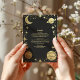 Celestial Black Gold Crescent Moon Wedding Begleitkarte