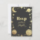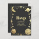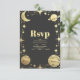 Celestial Black Gold Crescent Moon Wedding RSVP Karte