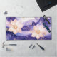 Eine atemberaubende Blumenkomposition, die kosmische Eleganz mit natürlicher Schönheit verbindet. Weiche Pfirsichblüten leuchten inmitten von wirbelnden Wellen tiefer Indigosphäre und Violett, die einem traumhaften Nachthimmel mit Sternenstaub ähneln. Delikate goldene Akzente und glitzernde botanische Elemente verstärken den ätherischen Charme dieses bezaubernden Kunstwerks.