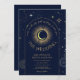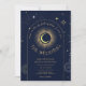 Himmelsmystische personalisierte Hochzeitseinladung mit Bogenrahmen mit galaxischer Milchstraße Mitternachtshimmel, Sternstaub, Halbmond und anderen astrologischen Symbolen in Blau und Gold und geschriebenem Zitat "URSACHE IN DER SKY FULL OF STARS I SAW YOU". Diese Karte ist leicht editierbar. Wenn Sie Hilfe bei der Anpassung dieser Karte benötigen oder mehr passende Produkte für diese Sammlung benötigen, schreiben Sie mir bitte via Zazzle.