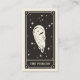 Diese himmlische Visitenkarte zeigt ein Ohr mit vielen Piercings, umgeben von Himmelsstern im Hintergrund. Die Abbildung wird im Stil einer Tarot-Karte in einer schwarz-cremefarbenen Palette gezeichnet. Das wäre perfekt für jeden, der ein kleines Piercing-Geschäft hat oder in einem Salon als Piercer arbeitet.
