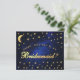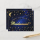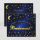 Ein Vorschlag für eine himmlische Brautjungfrau. Es hat goldgelben Text auf marineblau Himmelshintergrund, mit Imitaten goldenen Sternen und Mond. Das Wort Bridesmaid auf der Vorderseite (das ist in Imitaten Goldfolie) und die Nachricht auf der Rückseite sind in einem eleganten kalligrafischen Skript geschrieben, der Bogentext "[Name] wird mein" über dem Wort Bridesmaid in kleinen Kappen.