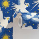 Entspannen Sie mit einem himmlischen Charme auf der Tapete "Celestial Cockatoos on Blue". Dieses bezaubernde Design besticht durch anmutige, weiße Cocktails mit gelben Wappen, die inmitten goldener Sonnen und funkelnden Sternen aufsteigen. Set vor einem blauen Hintergrund. Das lebhafte Blau erinnert an einen Nachthimmel und schafft eine traumhafte und skurrile Atmosphäre. Die dynamischen Posen der Vögel, kombiniert mit den Himmelselementen, bringen ein Gefühl von Bewegung und Magie an Ihre Wände. Ideal für Schlafzimmer, Kinderzimmer oder jeden Raum, der eine Touch der Fantasie und des Staunens sucht, verwandelt diese Tapete Ihr Zimmer in einen Sternenhimmel, in dem Natur und Kosmos wunderbar miteinander verschmelzen.