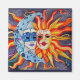 Original Aquarellmalerei von Sandra Gale mit zwei Masken, die die Sonne und den Mond darstellen. Diese Masken, jedes mit seinen traditionellen Farbkombinationen; kaltblau, lila und silber für den Mond und heiß rot, orange und gold für die Sonne. Diese Masken tragen das Lächeln und den Frosch der Theatermasken Comedy und Tragedy und sind umgeben von Himmelskörpern wie Sternen und Planeten. Es ist ein großartiges Design für Theaterliebhaber, Schauspieler, Kinder und Erwachsene oder für alle, die Astrologie, Sonne und Mond Lieben und Mardi-Gras-Masken für festliche Party.