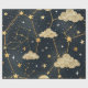 Mystical constellation pattern wrapping paper featuring golden stars, celestial lines, and dreamy clouds across a dark night sky background. Ideal for astrology lovers, stargazers, astronomy fans, spiritual seekers, and anyone who loves cosmic and celestial style.
