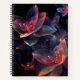 Luminous translucent flowers bloom within the cosmic night. Petals glow with ethereal light, blending hues of rose, coral, and starlit blue.