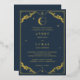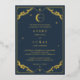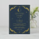 Celestial Crescent Moon Navy Blue Wedding Gold Folieneinladung