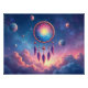 Eine faszinierende Szene eines Träumers, der zwischen Planeten und Wolken schwebt und die ätherische Schönheit des Kosmos in einer traumhaften Umgebung einfängt.