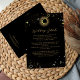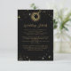 Himmelsmystische personalisierte Hochzeitszimerkarte mit galaxisch milchiger Mitte des Mitternachtshimmels mit Sternstaub, Halbmond und anderen astrologischen Zeichen in Schwarz und Gold. Diese Karte ist leicht editierbar. Wenn Sie Hilfe bei der Anpassung dieser Karte benötigen oder mehr passende Produkte für diese Sammlung benötigen, schreiben Sie mir bitte via Zazzle.
